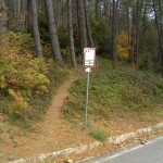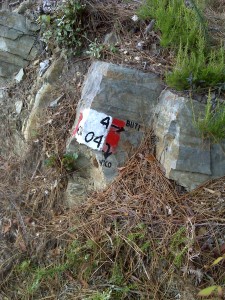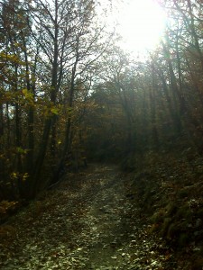 Come si voleva dimostrare dopo un qualche metro piano piano perdiamo il contatto visivo con i segnali del sentiero, d’ora in poi “navighiamo” esclusivamente con il tracciatore, che da buon compagno d’avventura ci riporta al sentiero principale, non dopo aver attraversato un tratto boschivo fitto, dove oramai sono pressoché perse ogni traccia dell’originaria via.